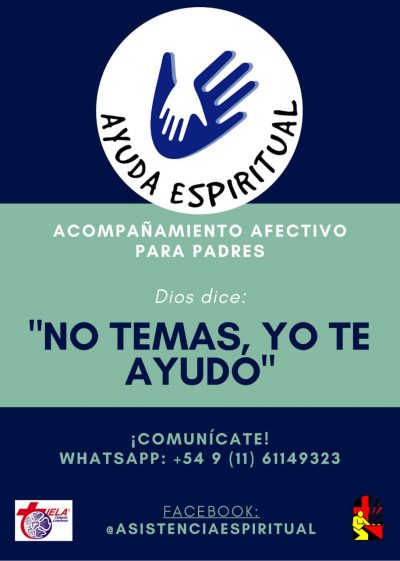 Seguramente desde Formación Cristiana, Bioética, Área de Capellanía u otros docentes estamos acompañando la necesidad emocional y espiritual de nuestras familias y docentes; a ello queremos agregar este servicio de ayuda espiritual on-line, para que quienes quieran comunicarse puedan recibirla completamente gratuita y confidencial. Invitamos a comunicarse directamente con el número que aparece en el flyer.